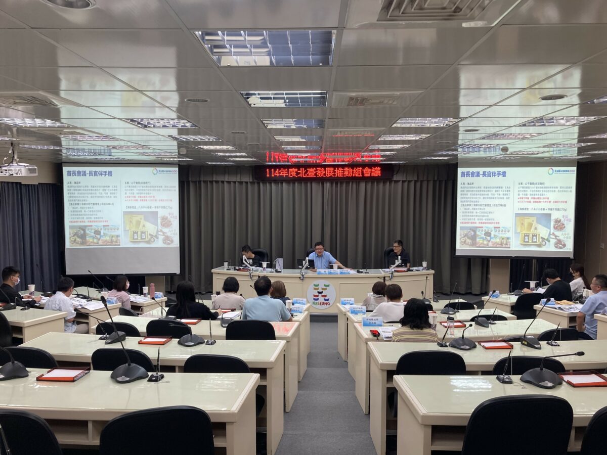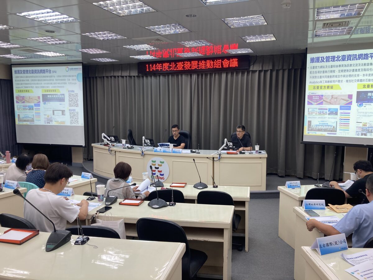 「北臺區域發展推動委員會」發展推動組114年度第1次工作會議於114年7月4日召開,由基隆市政府都市發展處張副處長書維主持,北臺各縣市發展推動組代表出席,方秘書長定安特別蒞臨指導。會議中討論114年度北臺年度主軸:「有愛城市‧城市創新」,以及短影片競賽活動規劃執行內容與北臺平台工作期程。